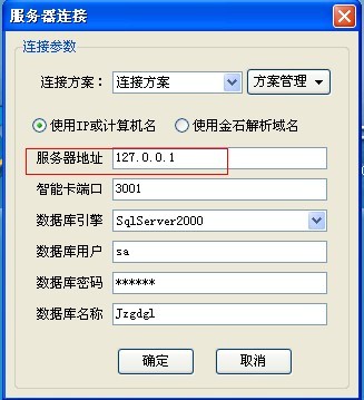 服務器連接設置中,服務器默認地址為:127.0.0.1 。