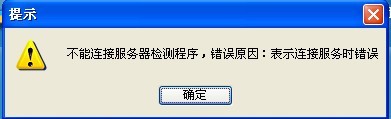 故障四、客戶端無法訪問,彈出錯誤提示:“不能連接服務器檢測程序,錯誤原因:表示連接服務器是錯誤”如下圖: