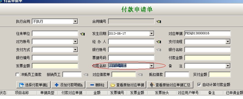 如果要支付期初欠款,要到財務(wù)模塊中直接新建付款申請單或付款單,然后在收款名稱里選擇期初應(yīng)付。如下圖: