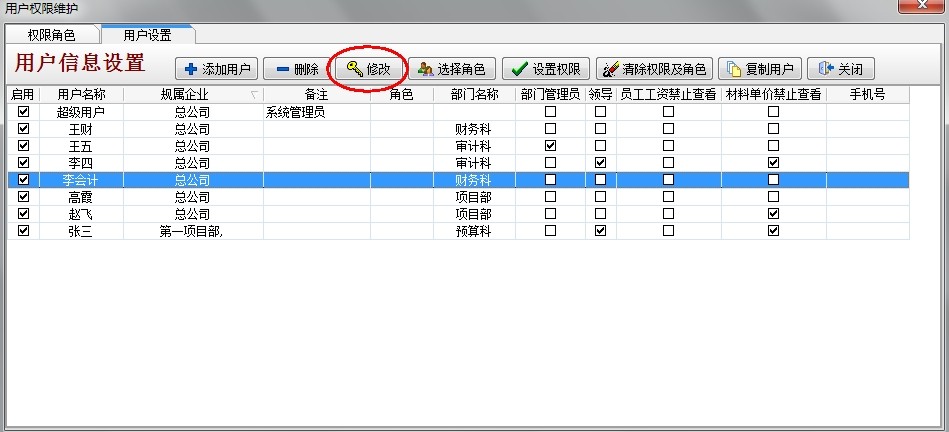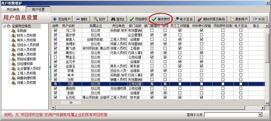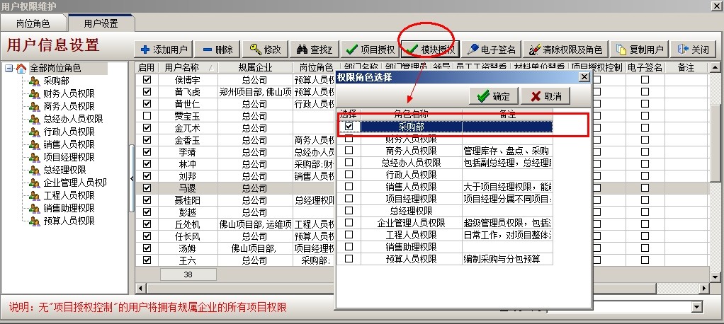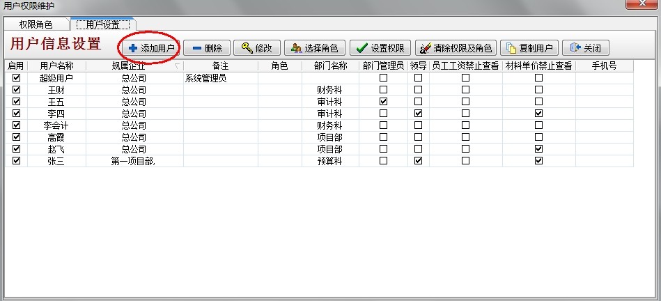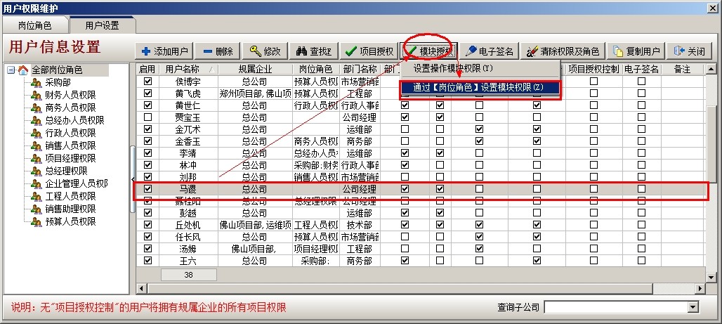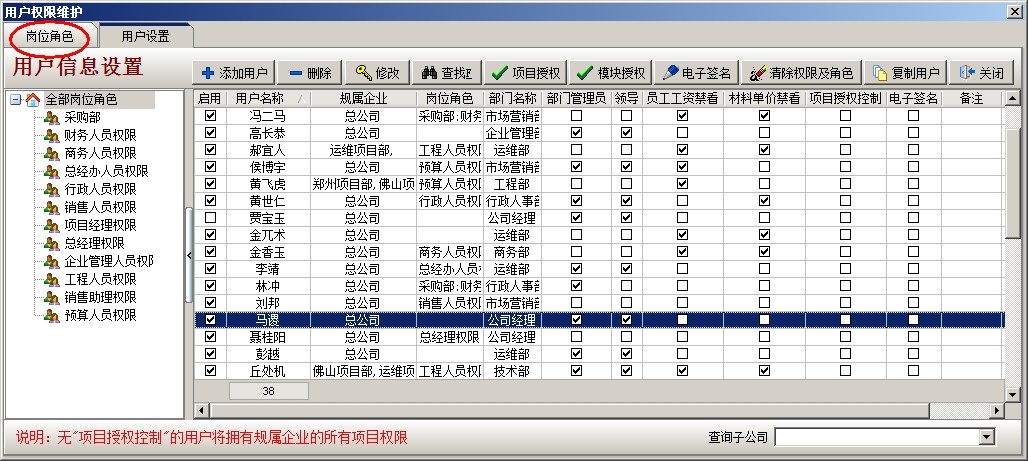 其他人員同樣的設(shè)置,對于相同部門權(quán)限相同的人員賦予同樣的角色即可。