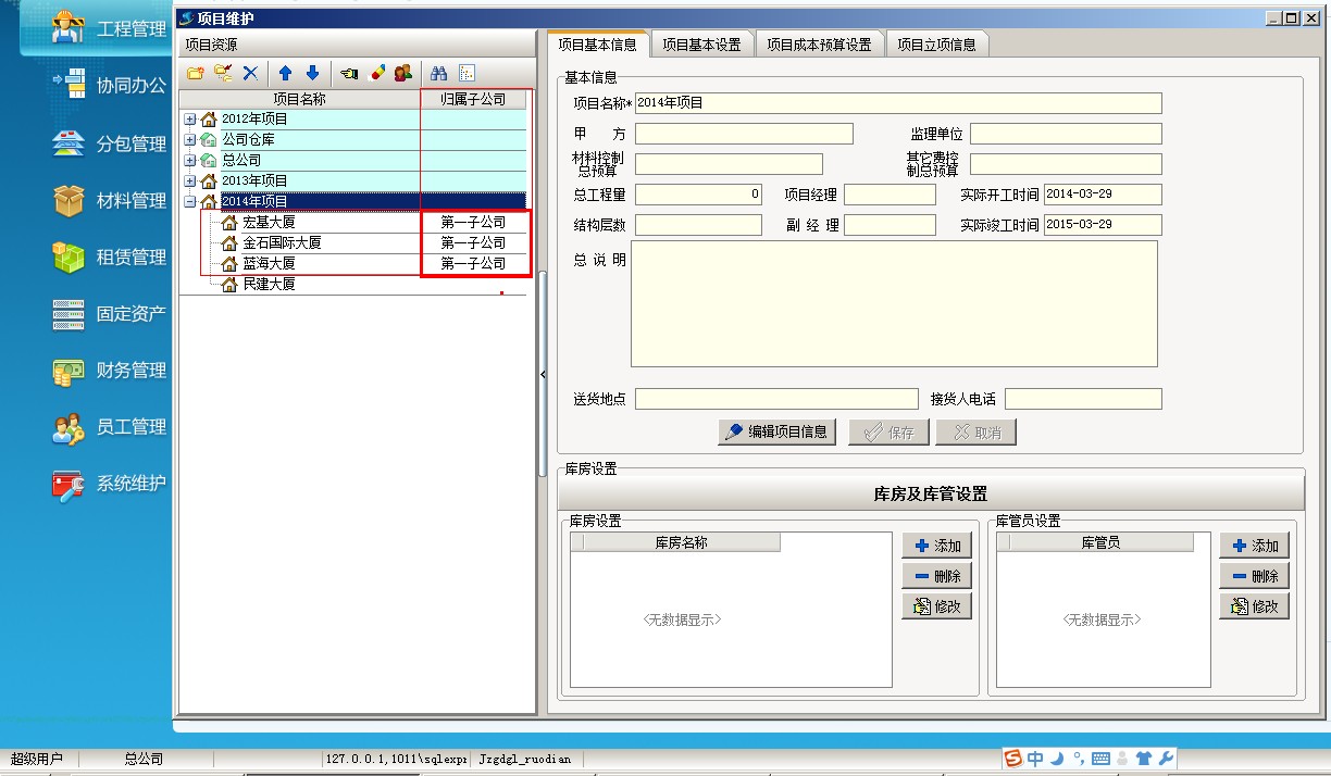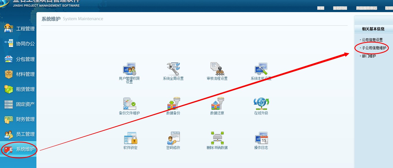 一、 項(xiàng)目按分公司授權(quán) (注:適用于有分公司的的企業(yè)使用)1、首先登錄超級(jí)用戶,導(dǎo)航欄---系統(tǒng)維護(hù)---子公司信息維護(hù)中設(shè)置幾個(gè)子公司名稱。