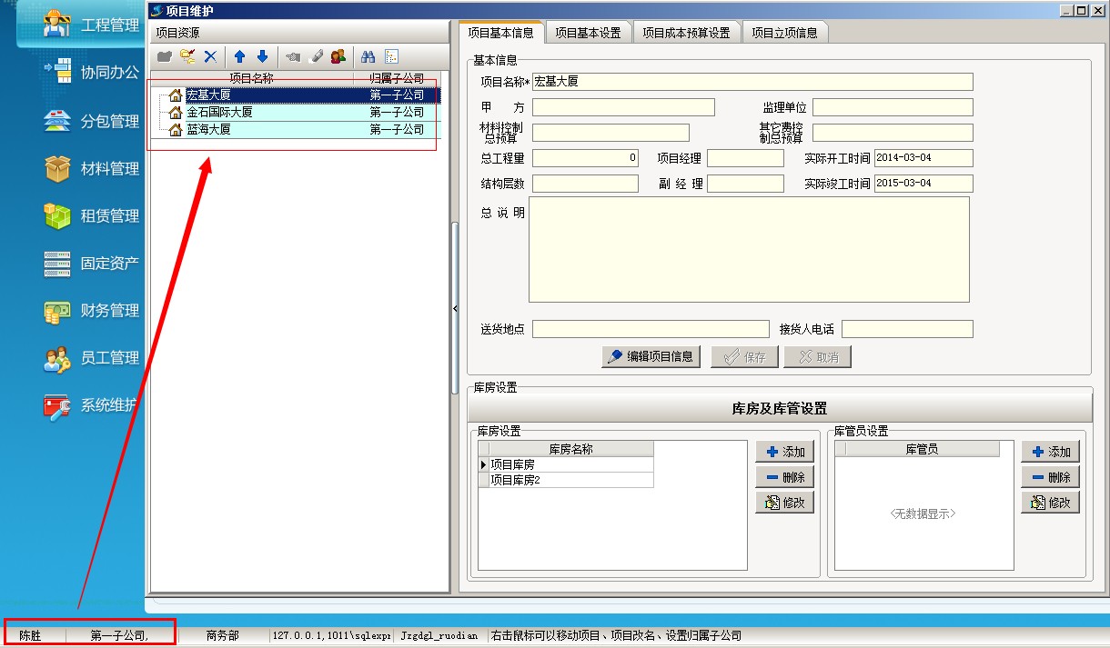 公司選擇窗口中選擇項(xiàng)目所屬的子公司,點(diǎn)確定